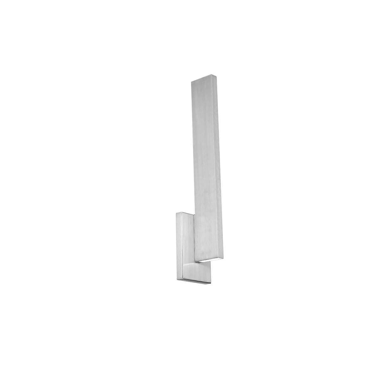 Aplique de pared de la marca Modern Forms, de diseño limpio e impactante. Este aplique cuenta con dos puntos de iluminación, uno hacia abajo y otro hacia atrás, para proyectar su propia silueta, es apto para instalar en exteriores. Tecnología LED con 50000 horas de duración, color de la luz 3000K, color del aplique aluminio. Medidas: 11cm L x 55cm H x 10cm A.