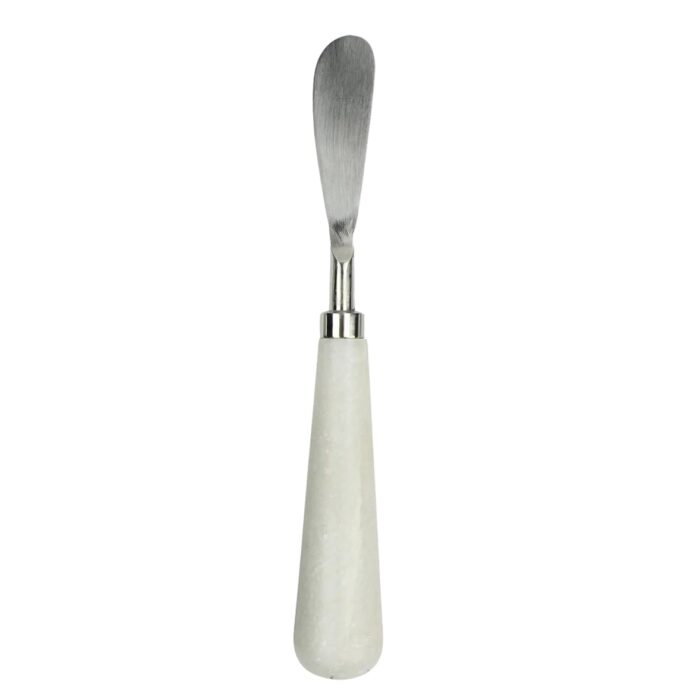 Cuchillo para quesos o dips, con mango de marmol blanco. Logitud: 20 cm.