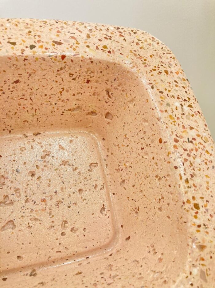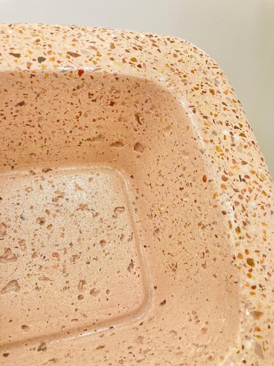 Cuenco artesanal de terrazo. Medidas: 22cm L x 22cm A x 6cm H.