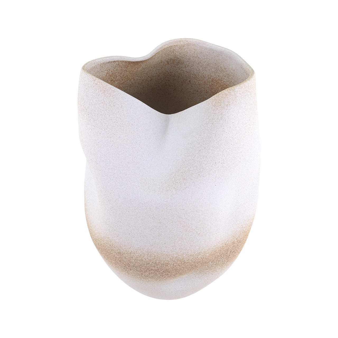 Jarron decorativo de porcelana, color blanco con textura cafe. Medidas: 25cmDIA x 38cmH.