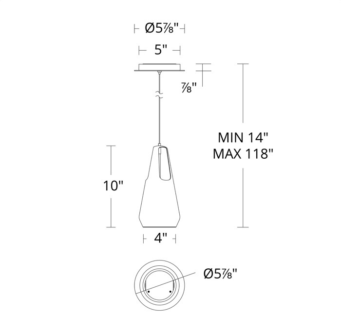 Lampara colgante de la marca Modern Forms. Diseño en forma de capsula con la parte superior abierta que revela su delicada suspensión a traves de un fino cable de acero, para un look limpio y minimalista. Medidas: 10cm DIA x 25cm H.