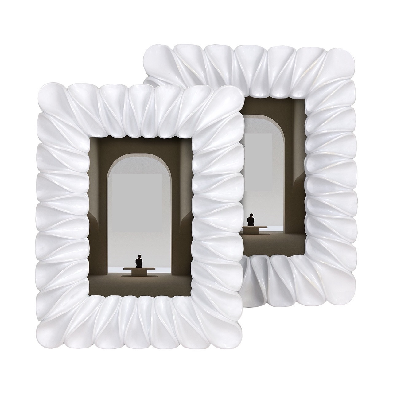 Portaretrato de resina blanca. Medidas: 23cm L x 1.2cm P x 28cm H. Se puede colocar fotografia de 5″x7″.