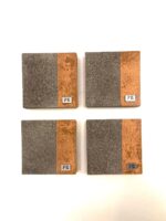 Set de 4 portavasos cuadrados artesanales, elaborados con cemento blanco y con tonalidades gris y cobre. Incluye resbalones en cada pieza. Medidas: 11,5cm L x 11,5cm A.